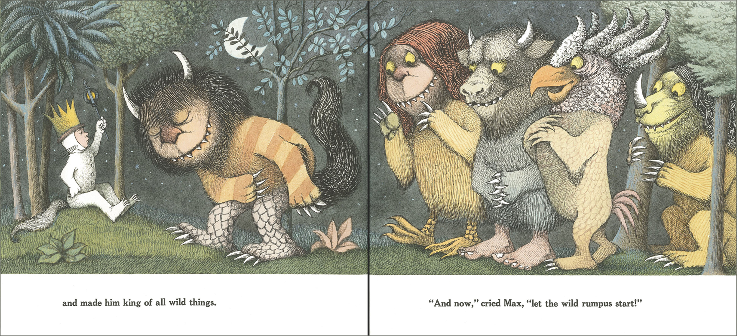 いたずらをしたマックスが部屋に閉じ込められます。すると,みるみる森や海がひろがり,舟に乗ってたどり着いたのは,かいじゅうたちが住む島でした。簡潔な英語と力強く生き生きとした絵,たっぷりと流れる音楽で想像力いっぱいに楽しめます。